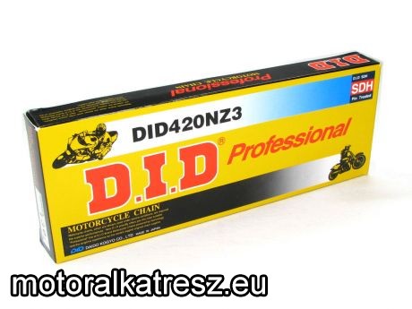 DID 420NZ3 gyűrű nélküli off-road/cross versenylánc. A lánchoz patentszem jár. | Gyártó: | DID | Típus: | 420 | Hossz: | 140 | Ajánlott teljesítmény / ccm: | 250ccm | Szín: | ezüst | Gyűrű típusa: | gyűrű nélküli | Felhasználási terület: | cross | Megvásárolom: | | |