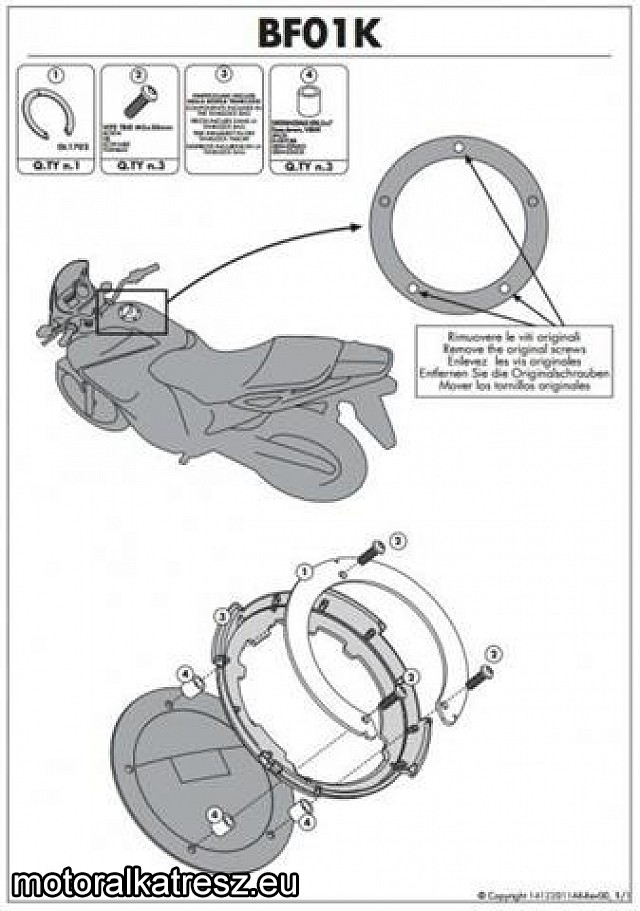 Speciális készlet a tanklockos táska ellendarabjának motorra való rögzítéséhez. | A termék gyári állapotú és felszereltségű motorra lett tervezve, így csak ilyen motorokra garantált az illeszkedése. Ehhez a termékhez kapcsolódó, nem a Kappa által gyártott kiegészítők kompatibilitására felelősséget nem tudunk vállalni. Az alábbi oldalon tudsz motorspecifikusan típust keresni Leírás a termékhez Gyártó: | Kappa | Megvásárolom: | | |