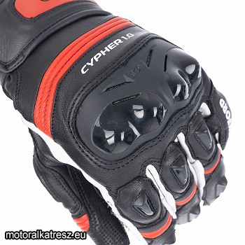 A Cypher egy csúcskategóriás sportkesztyű, amelyet olyan országúti motorosok számára terveztek, akik a legmagasabb szintű védelmet akarják. | Teljes bőr konstrukció aramid erősítéssel, TPU csuklókkal, extra körbetekerhető ujj- és tenyérvédelemmel, rövidebb, 5 cm-es mandzsetta áttekerhető TPR logóval kombinálva a CE 2. szintű KP tanúsítvánnyal (EN13594:2015) védettséggel. A maximális kényelem és a testreszabott illeszkedés érdekében a Cypher kesztyűk harmonikapanellel rendelkeznek a kéz hátsó részén, három ujjal és hüvelykujjal, valamint egy lebegő csuklóval. Védelem • 2. szintű KP tanúsítás (EN13594:2015) • Aramid erősítésű bőr tenyér a kopásállóság érdekében • Az Oxford sport TPU csukló-, ujj- és tenyérvédők ütésvédelmet és további kopásállóságot biztosítanak • Bőrrel megerősített tenyér-, hüvelykujj- és ujjfedések • PE hab párnázott burkolat a mandzsettánál és a hüvelykujjnál • TPR mandzsetta védelem Klímaszabályozás • Perforált ujjak a szellőzés érdekében • Izzadságelvezető kényelmi bélés a kéz hátsó részén Szövet és építés • 100% prémium anilinbőr • Érintőképernyővel kompatibilis mutató- és hüvelykujj • Az ergonómikus előre ívelt ujjszerkezet csökkenti a kéz fáradását Állíthatóság és illeszkedés • Dupla csukló- és mandzsetta állítópánt • Elasztikus csukló • Külső ujjvarrások a kényelem érdekében • Harmonika sztreccs panelek az ujjakon és a kézháton Gyártó: | Oxford | Használat: | Nyári | Anyag: | Bőr | Hossz: | Közepes | Méret: |